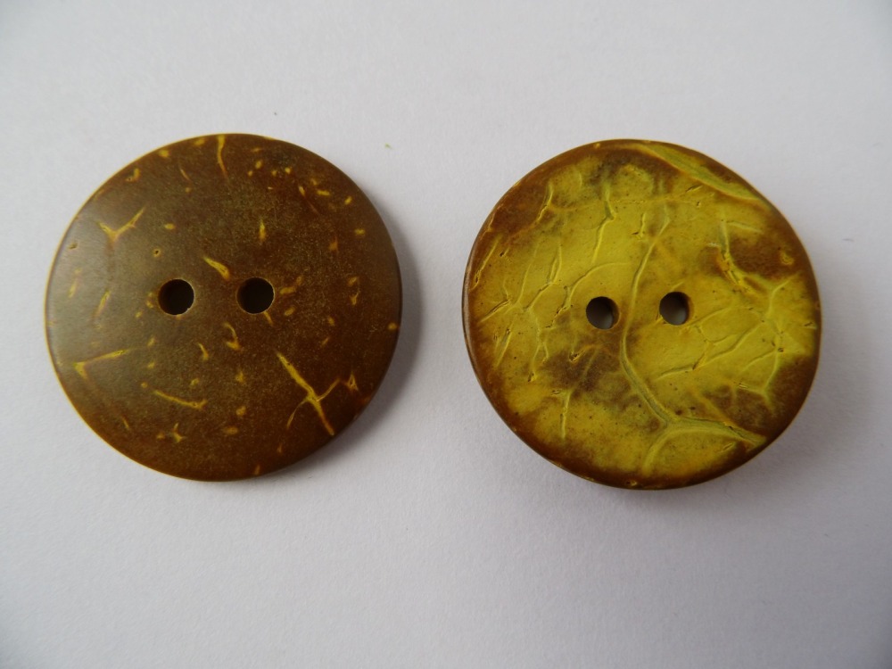 Mørk gul knap fremstillet af kokosnøddeskal.