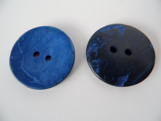 Mørk kobboltblå knap fremstillet af kokosnøddeskal.